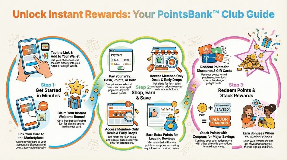 Why wait? Get the PointsBank™ Club Marketplace shopping Card on your phone — fast, fun, and packed with perks.